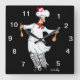 An original painting of a chef by Anne Ormsby adorns this fun wall clock.
