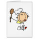 Male chefs will love these stick figure chef design T-shirts, mugs, cards, stickers, bags, and other chef apparel and gift items.