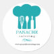 A graphic of a turquoise chef's hat with kitchen tools creating negative space within dominates this promotional sticker. A versatile sticker that will work for a catering company, personal chef or baker. Available in alternate colours with matching products.