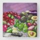 100% hand-painted signed original still life of Avocados, Limes, Purple Onions, and Eggplant. Great for kitchen or dining room.