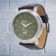 Chef's silver crossed spoon and fork Watch face displaying vintage Arabic Numerals with hours and minutes . Light numbers against olive background .Trendy item for male chefs .You can change 1 . the text " Chef L" 2 . the background colour