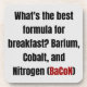 What's the best formula for breakfast? Barium, Cobalt, and Nitrogen (BaCoN) This is a great pun combining chemistry and the periodic table of elements as well as one of the best foods ever BACON. Perfect gift for a DAD JOKE lover or a teacher.