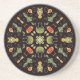 Chemistry lab coaster with a pattern of flasks, including Erlenmeyer flasks, and plants. This nerdy botanical design features some p-hybridised atomic orbitals, too. Cute feminine design for women in science.