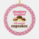 Chemistry Teacher ornament has funny will work for cupcakes quote and a trio of cute chocolate cupcakes occupation design. It makes a great Christmas gift idea or retirement gift for a woman or female Chemistry Teacher.