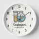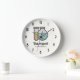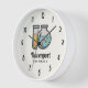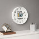 A clock with a cute illustration of a test tube holding yellow liquid and a rounded flask/beaker holding green liquid with red bubbles.