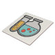 Ceramic tile with a cute illustration of a test tube holding yellow liquid and a rounded flask/beaker holding green liquid with red bubbles.