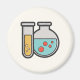 Magnet with a cute illustration of a test tube holding yellow liquid and a rounded flask/beaker holding green liquid with red bubbles.