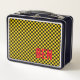 Chequerboard Black Gold School Kids NAME Fun Metal Lunch Box