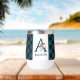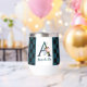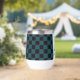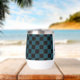 Trendy wine tumbler with fancy florals and large letter / initial A with a black and blue chequerboard border. Personalise with first or last name