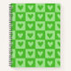 Bring some love and colour to your notes with this spiral-bound notebook featuring a charming chequerboard pattern of green squares, each containing a heart shape. This delightful design is perfect for school, work, or personal use, adding a touch of whimsy and style to your writing. Whether you're jotting down ideas, making to-do lists, or journalling, this notebook will make your tasks a bit more fun.