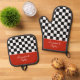 Chequerboard Italian Kitchen Chef with Name Oven Mitt & Pot Holder Set