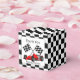 Chequered, black-white, Race-car, Gift Favour Box 2x2