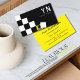 Make a lasting impression with this cool and modern business card design featuring black and white chequered pattern and the backgrounds are black and bright yellow.