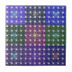 Teal/Cyan (in the centre): The central circular elements within each square feature teal or cyan, providing a striking contrast against the blues and purples.