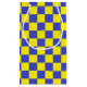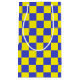Abstract digital art of blue and yellow squares in a chequered formation.