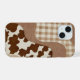 Chequered Brown Wavy Mocha Aesthetic Cow Print Cut iPhone 15 Case