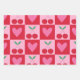 Chequered Cherries with Pink Hearts Pattern Wrapping Paper Sheet