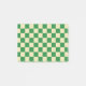 Abstract digital art of dark green and beige squares in a chequered formation.