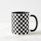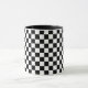 A classic chequered pattern decorates this coffee mug. The design is from original art.