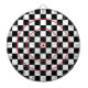 The flag of a winner. Sharp black and white chequered pattern with red circles.