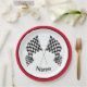 Chequered Flag Design Paper Party Plate with customisable text and outer ring colour.