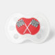 Adorable pacifier for a baby boy gift! Was well received for a family that loves nascar. Perfect quality! So impressed