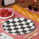 Chequered Flag pattern. The chequered flag (or chequered flag) is displayed at the start/finish line to indicate that the race is officially finished. At some circuits, the first flag point will display a repeat chequered flag (usually on the opposite side of the circuit). The flag is commonly associated with the winner of a race, as they are the first driver to "take" (in other words, drive past) the chequered flag.
