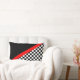 Designer throw pillows for motorsports fans and racers. A chequered flag pattern is featured on half the pillow with black on the other half separated by a red stripe. These racing themed throw pillows would be the perfect touch toa child's racing decorated bedroom.