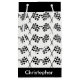 Black and white chequered flags repeating image on solid white novelty for your favourite car racing fan.