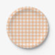 Chequered Gingham Check Plaid Picnic Peach Paper Plate