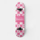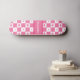 Chequered Heart Squares Pattern Pink and Whtie Skateboard