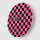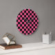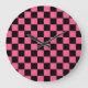 Abstract digital art of hot pink and black squares in a chequered formation.