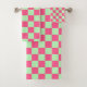 Chequered Hot Pink and Soft Green Bath Towel Set