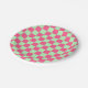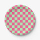 Abstract digital art of hot pink and soft green squares in a chequered formation.