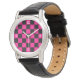 Chequered squares hot pink black geometric retro pattern Fashion Accessory Wrist Watch gift for her. Cool retro chequered geometric square pattern. Vintage tile black and hot pink modern chequered.