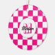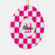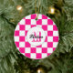 Chequered Hot pink white geometric retro Monogram Ceramic Ornament