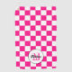 Chequered Hot pink white geometric retro Monogram Golf Towel. Personalise Golf Accessories with your custom initial and name. Cool retro hot pink chequered geometric square pattern designed gift for golf players.