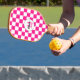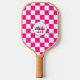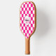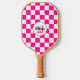 Chequered Hot pink white geometric retro Monogram Pickleball Paddle