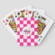 Chequered Hot pink white geometric retro Monogram Playing Cards