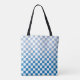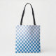 Chequered Light to Dark Blue and White Pattern Tote Bag