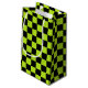 Abstract digital art of black and a lime green colour squares in a chequered formation