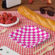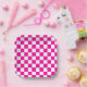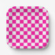 Abstract digital art of Neon Pink and white squares in a chequered formation.