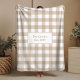 Chequered Neutral Beige Sherpa Blanket Family Name