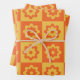 Chequered Orange and Yellow Retro Flowers pattern Wrapping Paper Sheet