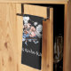 Looking for a fun housewarming gift? Get these funny, pink pig cartoon mascot wearing a black and white chequered scarf, white chef hat, holding a long handled spatula, while sitting on top of a smoking grill with a black background. Personalise with a title and subtitle to make it perfect for the barbecue lovers you know.