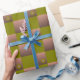Chequered pattern in brown and olive green wrapping paper