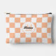 Chequered peach and white geometric retro Monogram Accessory Pouch