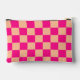Chequered peach hot pink geometric retro Monogram Accessory Pouch