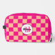 Chequered peach hot pink geometric retro Monogram Dopp Kit