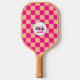 Chequered peach hot pink geometric retro Monogram Pickleball Paddle